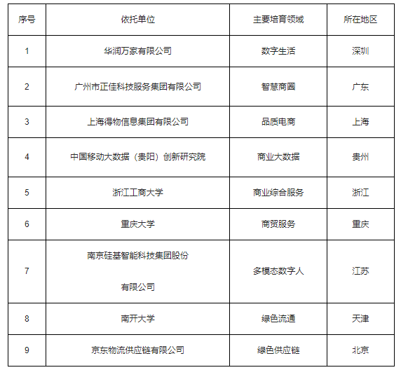 商业技术应用创新中心培育名单