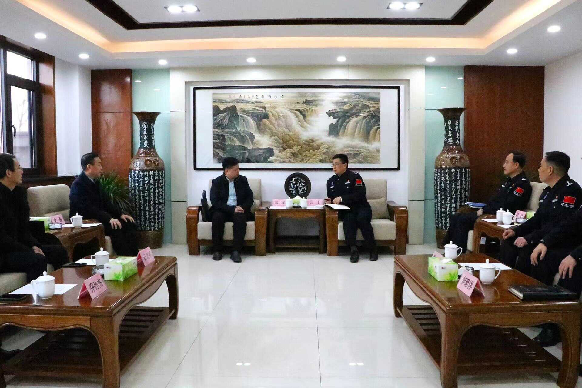 1月16日上午,省商务厅副厅长、省自贸办副主任孟军带队拜访陕西边检总站,与陕西边检总站副总站长吴千就促进开放型经济发展、加强智慧口岸建设、推进榆林航空口岸开放等方面工作进行座谈。