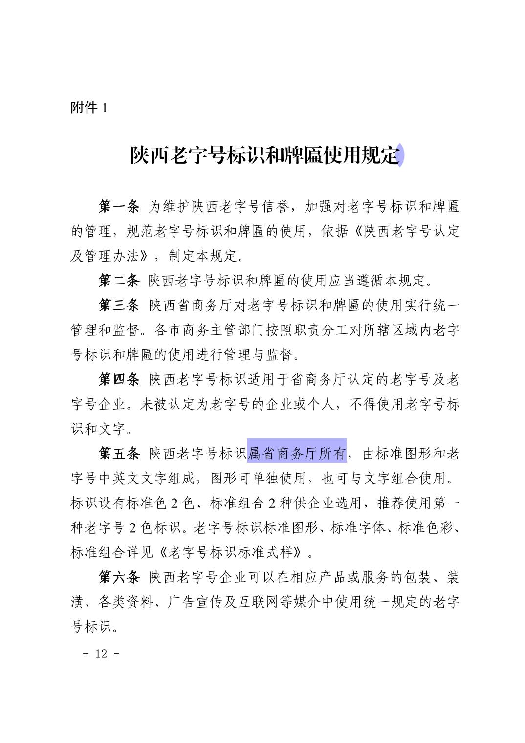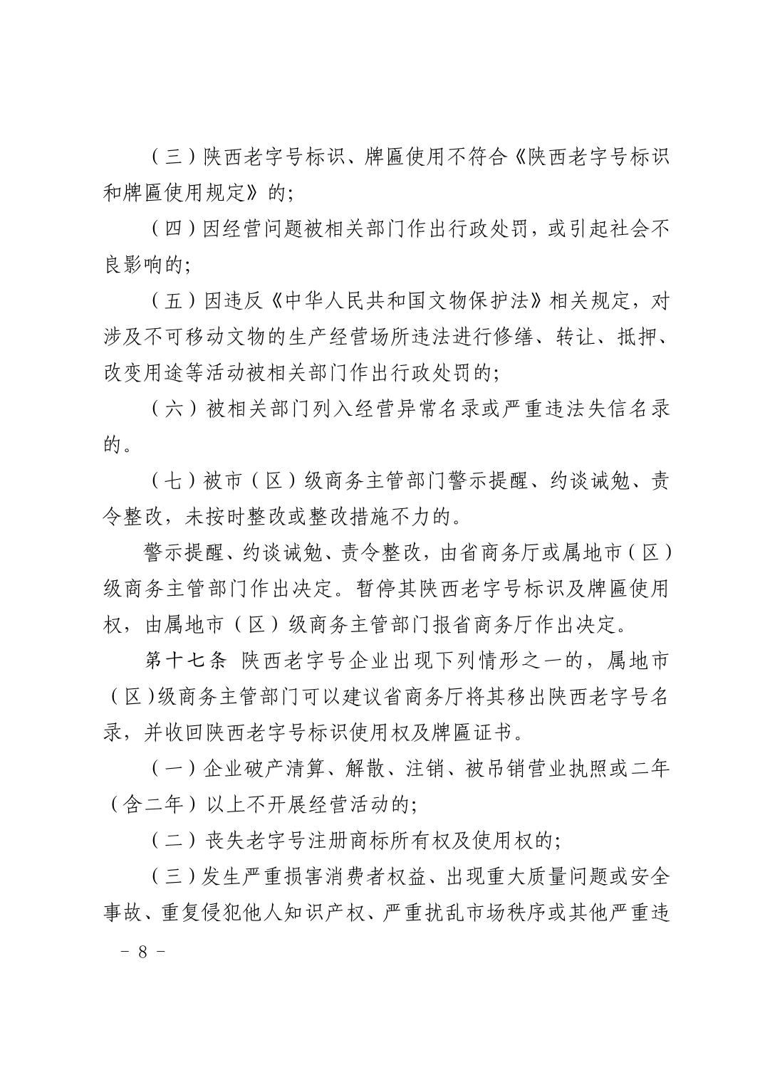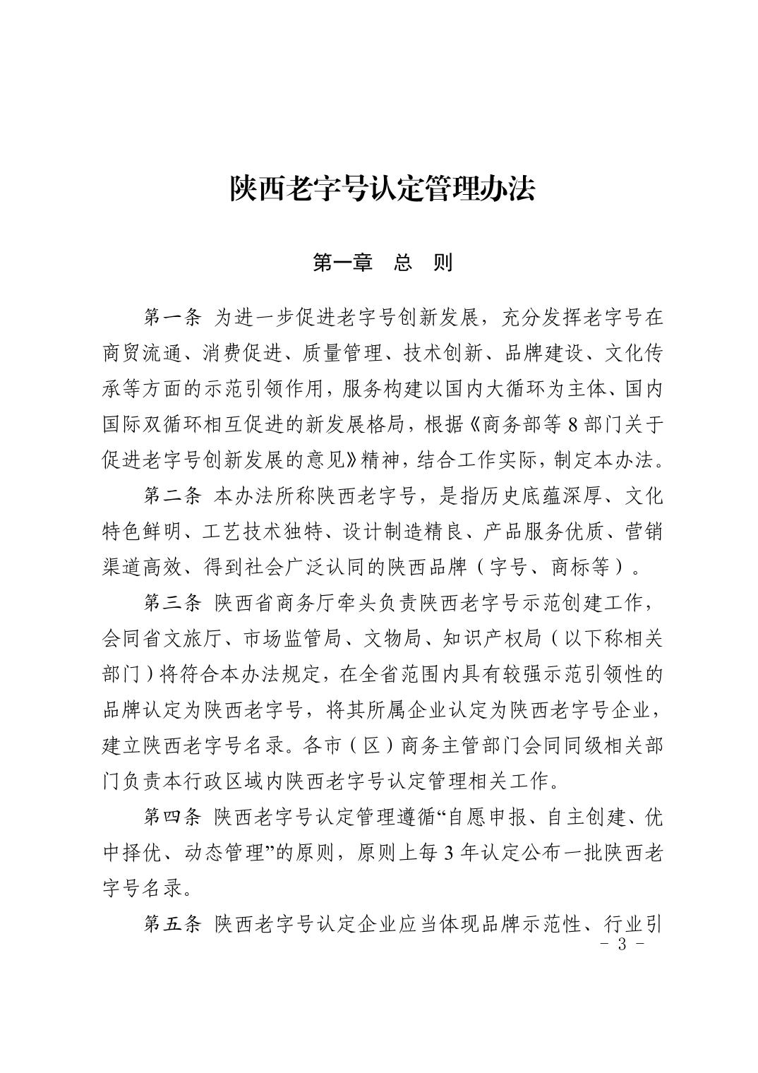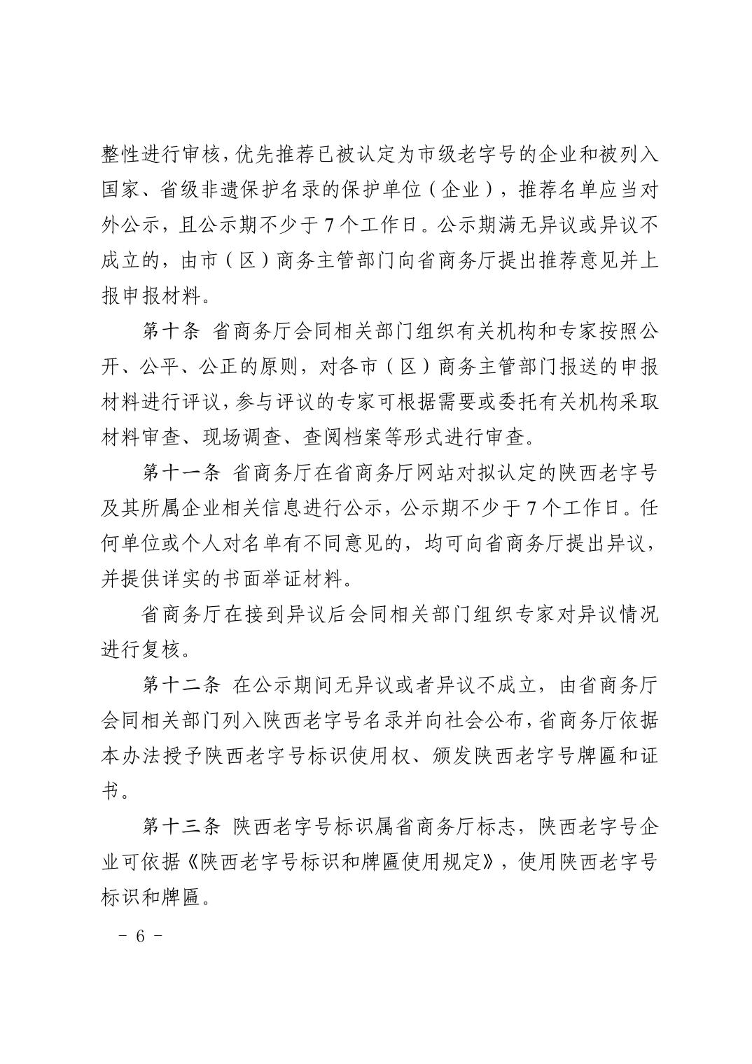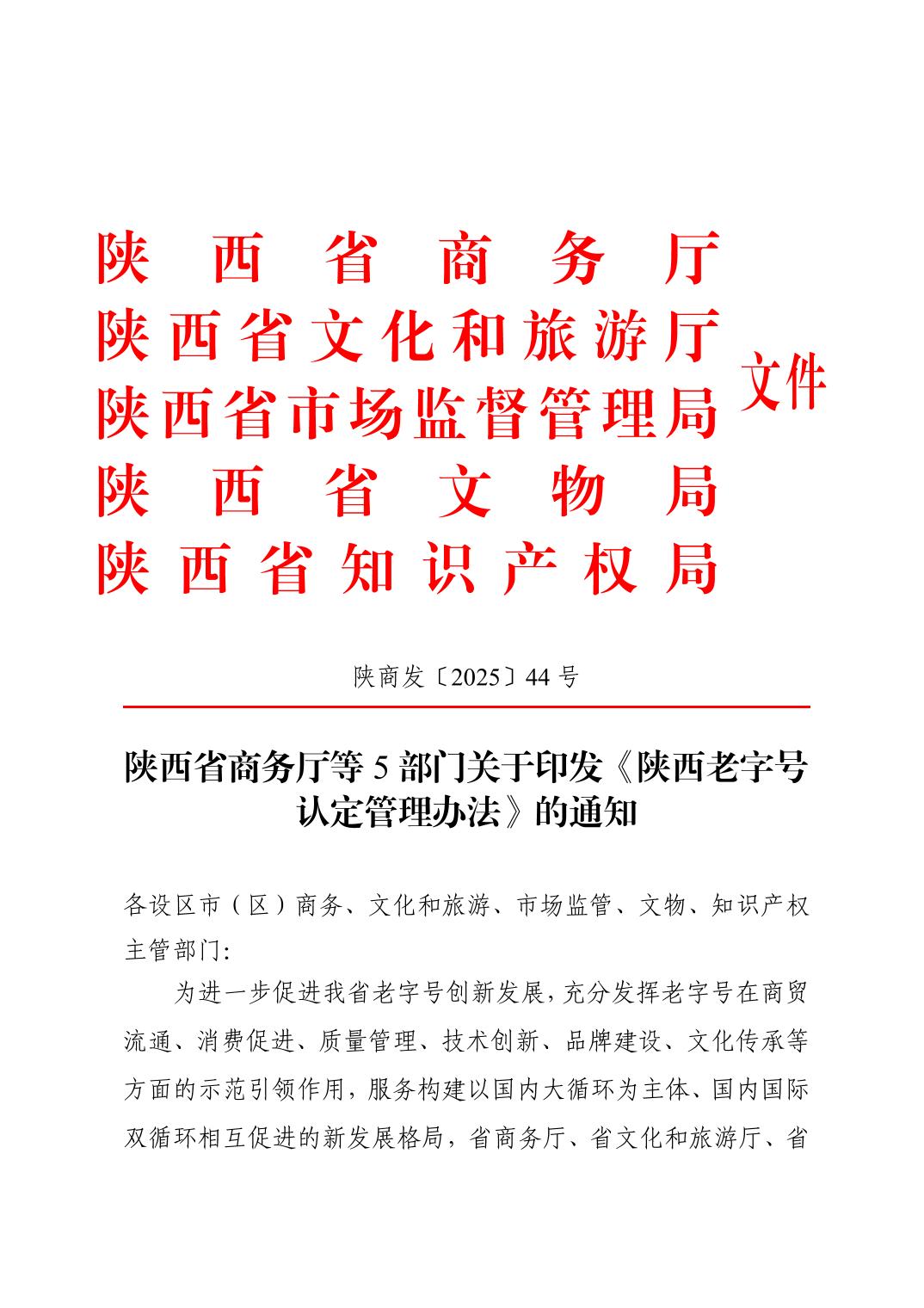 陕西省商务厅等5部门关于印发《陕西老字号认定管理办法》的通知